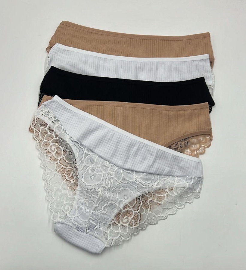 Трусы в рубчик для женщин (средний размер/кружевные) 163687-1